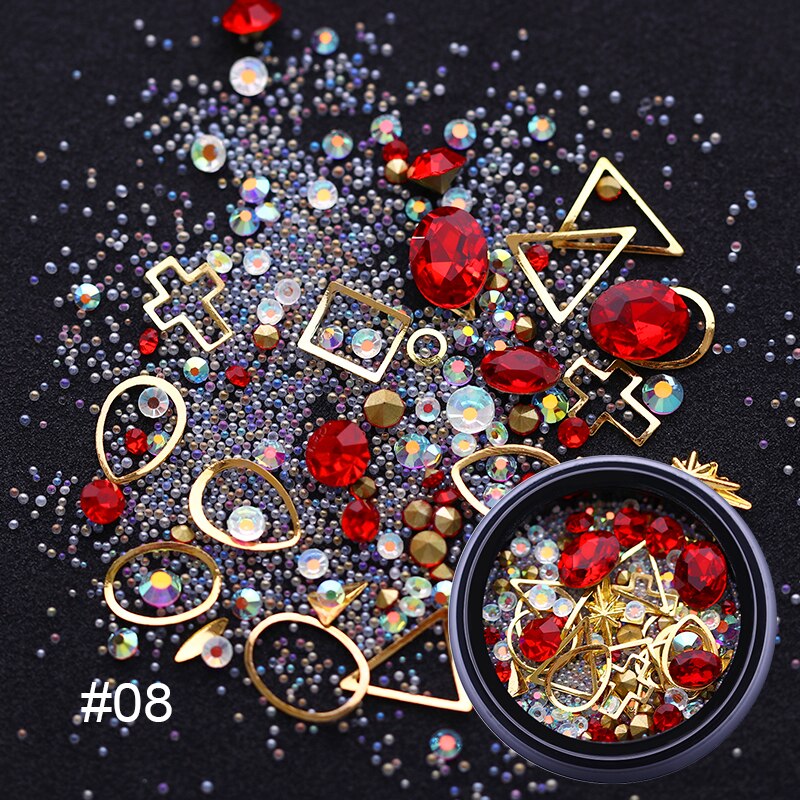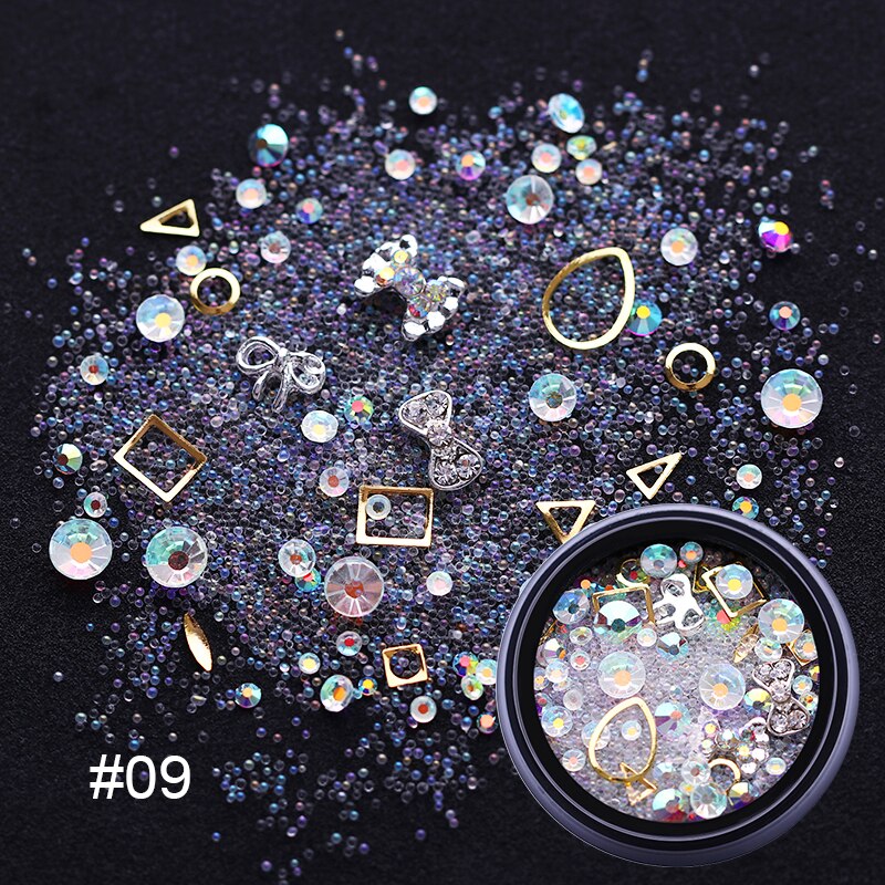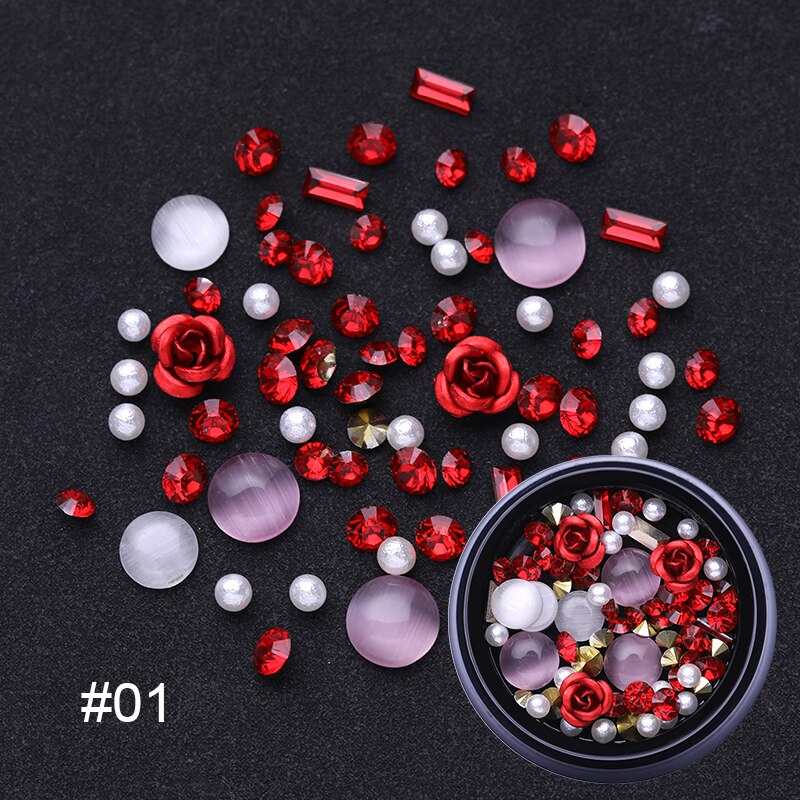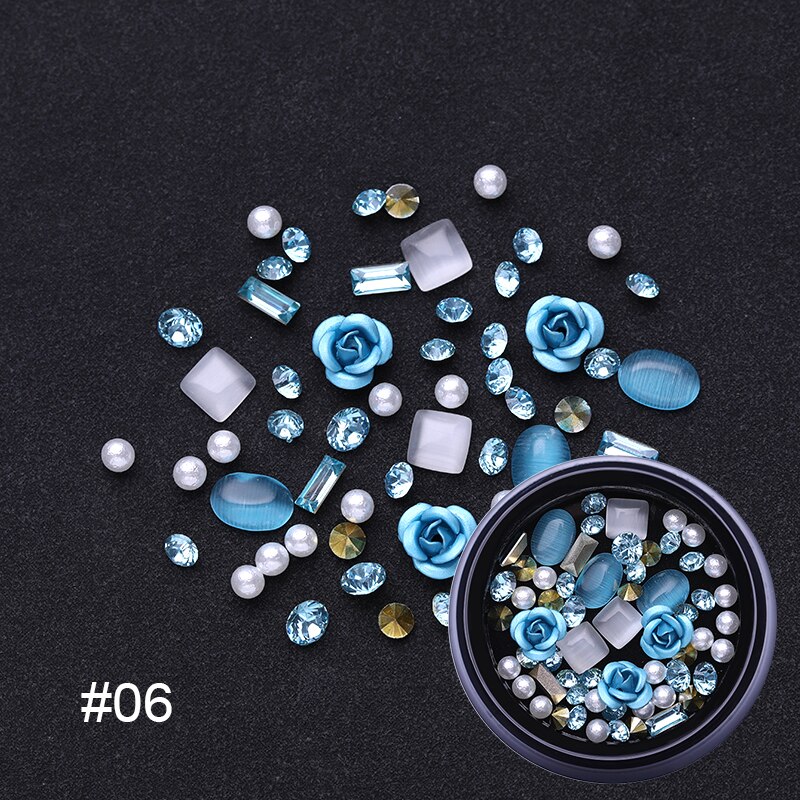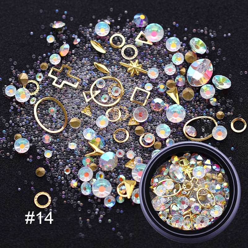 1 stk 3d negle rhinestones sten blandede farverige gør-det-selv-decals med neglebuede pincetkrystaller nail art gør-det-selv dekorationer