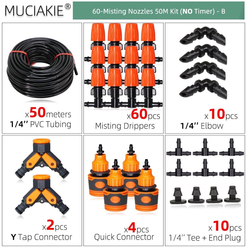 10-50m orange justerbare tågevandingssystem automatisk havevanding kølesæt 1/4 '' pvc hovedledningsslange have