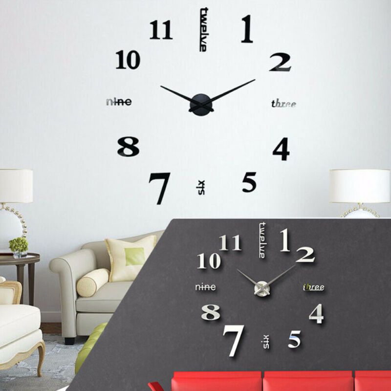 40*40cm stue dekoration gør-det-selv 3d akryl vægure wallstickers nåle kort ur digitalt spejl overflade vægur
