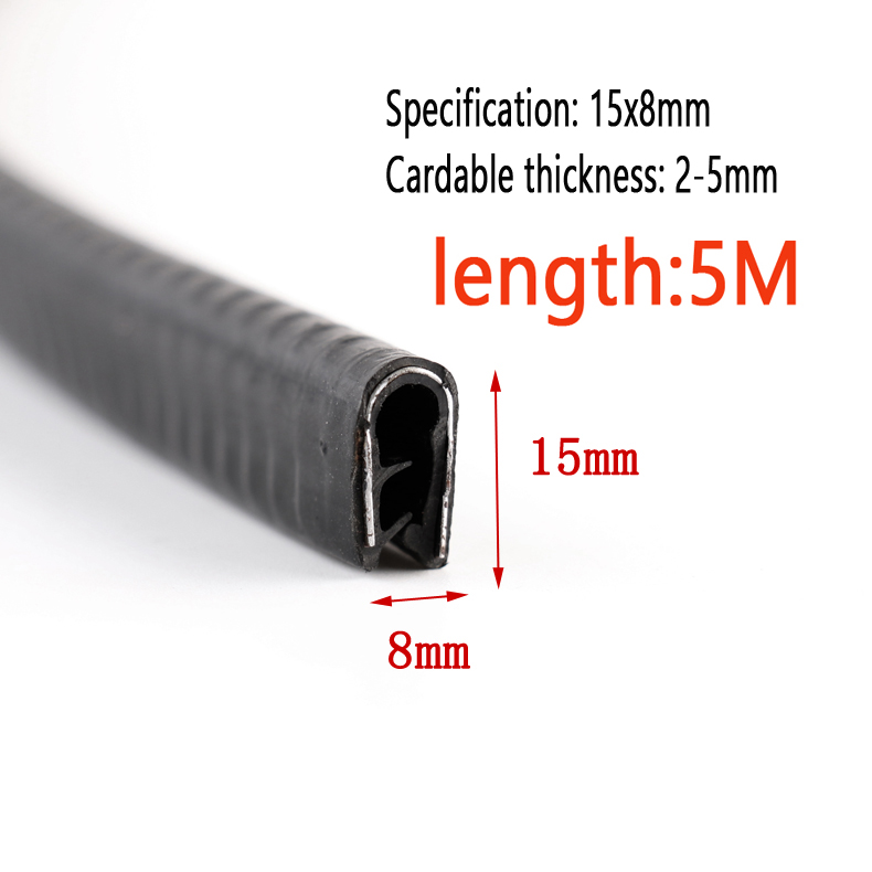 5m længder clmap fortykket panel u-formet gummitætningsliste kant gummibeskyttelsesliste metalplade kant gummiliste