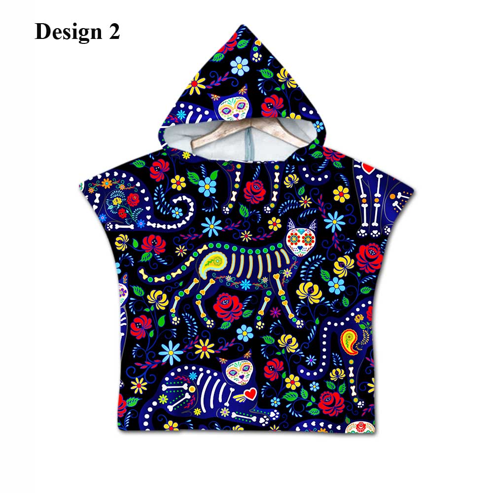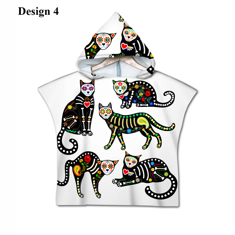 Gotisk cool halloween skræmmende kat skelet kranium baby børn børn hættehåndklæde pool bad strand poncho håndklæde kappe